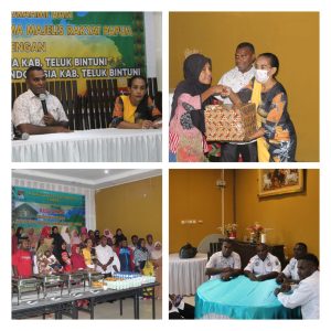 Acara itu di akhiri dengan penyerahan bingkisan Berupa “Kerudung” bagi keterwakilan perempuan muslim teluk Bintuni, dan penyerahan Santunan bagi Pemuda muslim teluk Bintuni dan Pemuda Karang Taruna.