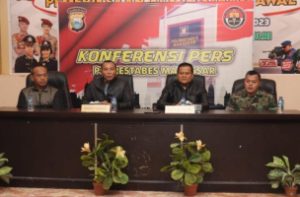 Menyikapi tentang adanya kesalahpahaman antara oknum anggota Patmor Sabhara Polrestabes Makassar terhadap salah satu anggota Brigif 11/BS yang terjadi di Kota Makassar, Pangdam XIV/Hasanuddin Mayjen TNI Dr. Totok Imam Santoso, S.I.P., S.Sos., M.Tr. (Han)., bersama Kapolda Sulawesi Selatan Irjen Pol Drs. Setyo Boedi Moempoeni Harso, S.H., M.Hum., menggelar konferensi pers, Jumat (14/04/2023), di Aula Polrestabes Makassar.
