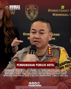 Subdit Jatanras Ditreskrimum Polda Metro Jaya berhasil menangkap Dua pelaku pembunuh bos pemilik hotel Assirot Residence, Naima S Bachmid (61), yakni S dan F, ditangkap oleh Subdit Jatanras Ditreskrimum Polda Metro Jaya.