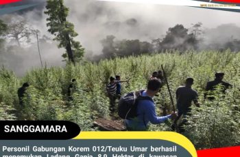 Personil Gabungan Korem 012/Teuku Umar berhasil menemukan Ladang Ganja 8,9 Hektar.