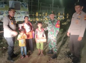 Lakukan Patroli Gabungan Antisipasi Gangguan Kamtibmas Sekaligus Berikan Bantuan Sembako Kepada Masyarakat Kurang Mampu