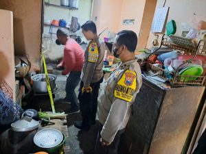 Bhabinkamtibmas Polsek Genteng Surabaya Aipda Triloka bersama Kasi Bangtib, Staf Satpol-PP, BPBD, PMI serta warga sekitar melaksanakan pengamanan dan membantu evakuasi di sekitaran lokasi LPG meledak.