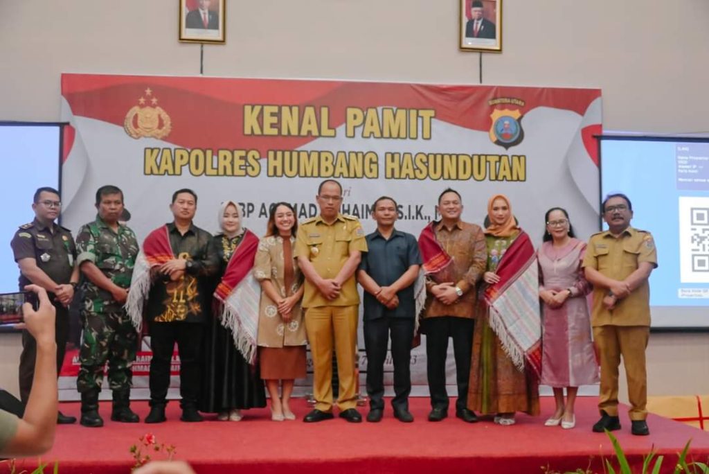 Sebagai tanda kehormatan, Bupati Humbahas bersama tokoh masyarakat memberi cendramata berupa ulos kepada AKBP Achmad Muhaimin dan AKBP Hary Ardianto. Selesai acara kenal pamit, dilanjutkan buka puasa bersama.(As.JPN.Hh).