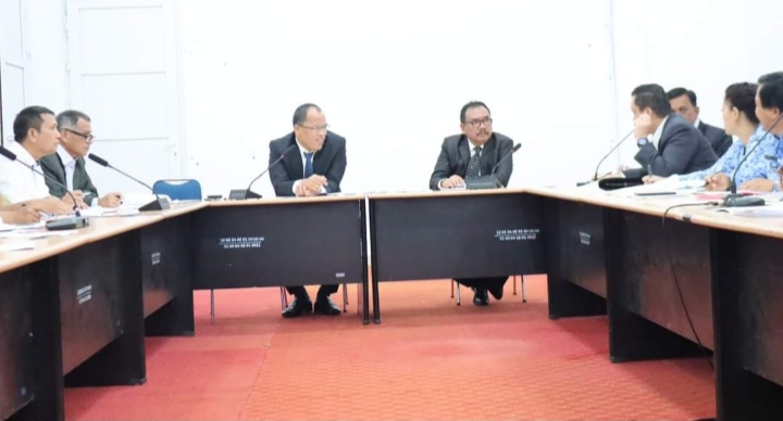 Bupati Humbahas Dosmar Banjarnahor, SE didampingi Sekda Drs Tonny Sihombing dan Plt Kadis Kesehatan P2KB dr Gunawan P Sinaga memimpin rapat koordinasi konvergensi percepatan penurunan stunting bertempat di Kantor Bupati Humbahas, Senin, 22/5/2023.