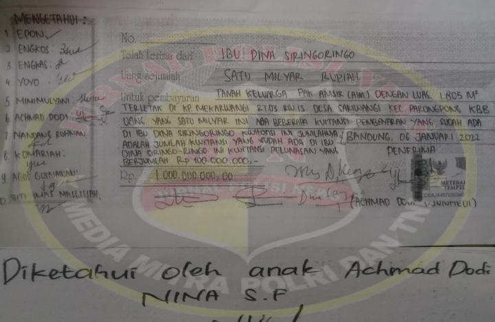 “Dikantor polisi sudah ada atasnama seseorang itu (pembeli pertama), nah.. memang belum dicatat, itu baru di draft. Tapi kalau ini kan (antara Achmad Dodi Djunaedi dan Marangin Siringoringo) sudah transaksi (jual-beli),” ucapnya.