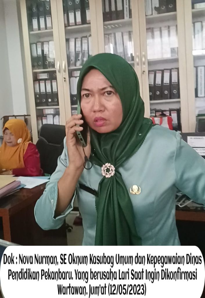 Akan hal tersebut diatas, awak media berusaha menjumpai Nova Nurman, SE Kasubag Umum dan Kepegawaian Dinas Pendidikan di ruang kerja, sekaligus meminta tanggapan akan dugaan salah seorang Oknum Kepala Sekolah Dasar Negeri yang ada di kota Pekanbaru diduga lakukan dugaan penipuan terhadap masyarakat dengan dugaan mengiming-imingkan Proyek. Jum’at (12/05/2023)
