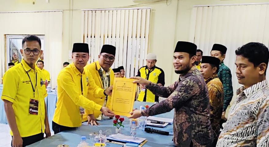Ketua DPD Partai Golongan Karya (Golkar) Kabupaten Rokan Hilir, Afrizal Sintong menyerahkan berkas ke 45 Bacaleg ke Ketua KPUD Rohil.