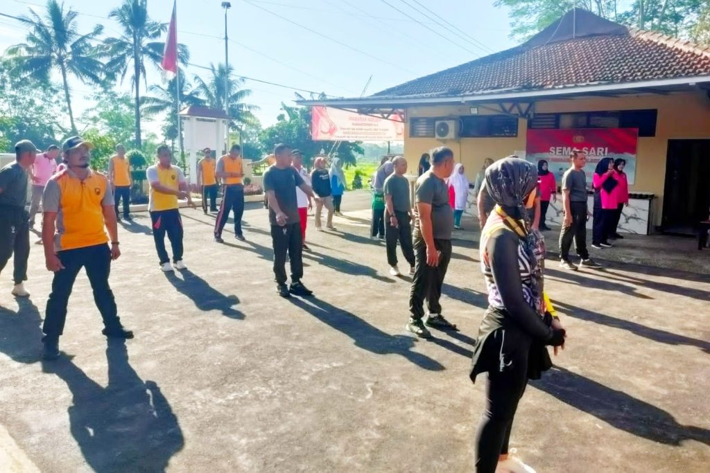 Anggota TNI – Polri di Kecamatan Kutasari, Kabupaten PurbaIingga melaksanakan kegiatan olahraga bersama. Kegiatan dilaksanakan di halaman Mapolsek Kutasari, Jumat (12/5/2023).