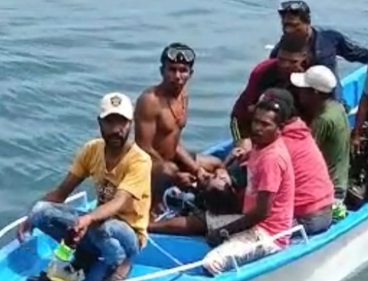 Alhasil ditemukanlah ‘MT alias La Uga (33). Dan korban oleh temanya dipanggil untuk menyelam, agar bisa menemukan tas pinggang yang terjatuh tadi. Sontak, pencarian tas dilakukan sekitar pukul 21 : 00 WIT