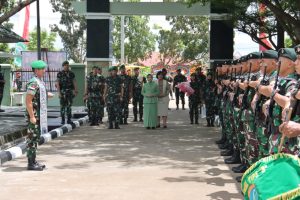 Setibanya Pangdam XII/Tpr disambut dengan pengalungan syal dan pemasangan tanjak oleh Kasdam XII/Tpr Brigjen TNI Yufti, S.E., M.M. Sedangkan Ketua Persit KCK Daerah XII/Tpr menerima Hand Bucket dari Wakil Ketua Yayasan Kartika Jaya Cabang XVII serta tarian selamat datang.