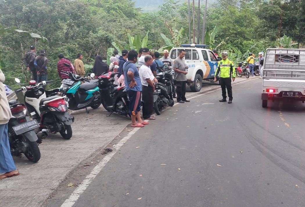 Polisi evakuasi Truk Tangki Aspal Masuk Ke Jurang 20 Meter di Jalan Raya Citarik Sukabumi,