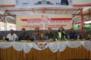 Dalam rangka memperingati Hari Buruh Nasional 01 Mei 2023, Polres Nias bersinergi dengan Kodim 0213/Nias, menggelar silahturahmi melalui sarapan bersama kemudian memberikan bantuan tali asih kepada Para Buruh Pelabuhan yang dilaksanakan di Ruang tunggu Terminal Pelabuhan angin Gunungsitoli, Senin (01/05/2023) pagi.