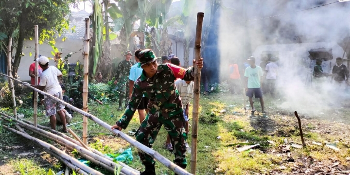 Bersama Warga Dusun Kauman, Babinsa Sumberrejo Bojonegoro laksanakan Karya Bakti Persiapan Hari Raya Idul Adha 1444 Hijriyah