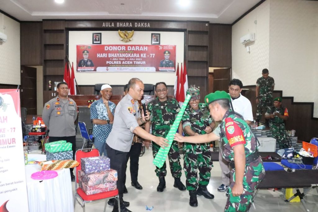 “Selain dalam rangka Hari Bhayangkara ke 77, kegiatan ini sebagai bentuk dari kepedulian Polres Aceh Timur terhadap sesama, serta sebagai upaya menumbuhkan kesadaran berperilaku hidup sehat kepada masyarakat melalui kegiatan donor darah.