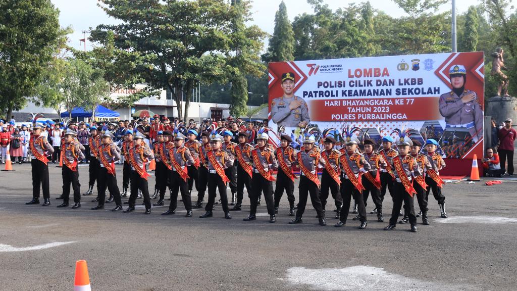 Polda Jateng | Dalam rangka Hari Bhayangkara ke-77 tahun 2023, Polres Purbalingga menggelar Lomba Polisi Cilik (Pocil) dan Lomba Ketangkasan Baris Berbaris (LKBB) Patroli Keamanan Sekolah, Selasa (27/6/2023).