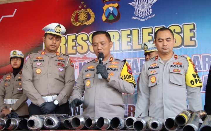 Tilang tersebut diberikan kepada pengendara yang melakukan konvoi maupun ugal-ugalan dengan menggunakan knalpot yang tidak sesuai dengan standarnya.