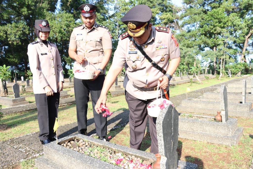 Menjelang Hari Bhayangkara ke 77 yang jatuh pada 1 Juli 2023 Mendatang, Jajaran Polres Bogor melakukan kegiatan ziarah tabur bunga untuk menghormati para pahlawan Polri yang telah gugur, (28/06/2023).