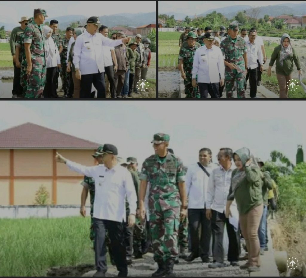 Bupati Kerinci, Dr. H. Adirozal, bersama dengan Kadis PUPR Maya Novefri Handayani melakukan kunjungan untuk meninjau Karya Bhakti TNI di Desa Telaga Biru dan Siulak Mukai Seberang, Rabu (21/6/2023).