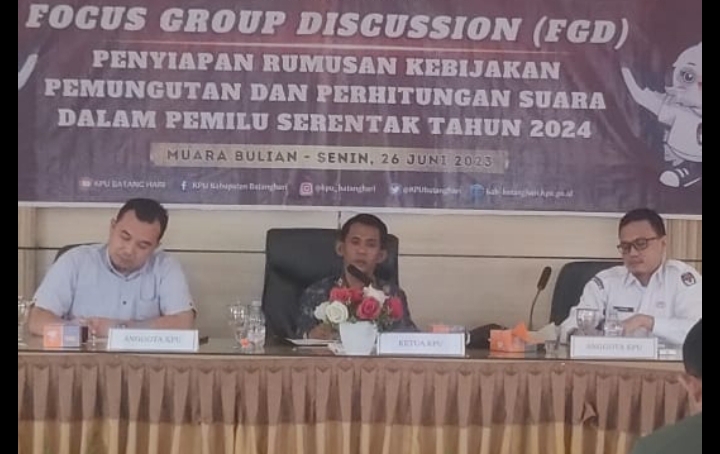 Dalam rangka persiapan menghadapi pemilihan umum 2024 Nanti KPU Kabupaten Batanghari gelar acara Focus Discussion Group yang bertemakan penyiapan perumusan kebijakan pemungutan dan perhitungan suara dalam pemilu serentak tahun 2024