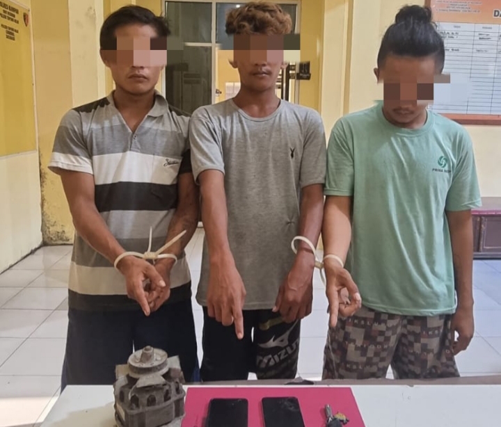 “Dari penangkapan ketiga pelaku berhasil diamankan barang bukti berupa HP Vivo, HP Oppo, Dinamo Kipas dan sepeda motor Honda Beat warna biru tanpa nomor polisi,” tegas Simanungkalit.