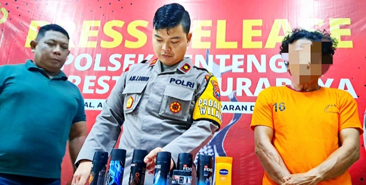 Tersangka berhasil ditangkap saat berada di minimarket Jalan Peneleh, Surabaya. Saat itu mengambil barang yang bisa dijual kembali, seperti parfum merek Axe dan lotion. Katanya untuk kebutuhan sehari-hari,” jelas Kapolsek Genteng Kompol Andika M Lubis, Senin (12/6/2022).