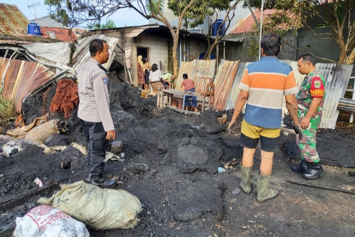 Polsek Cibinong Polres Bogor Gelar Lakukan Olah TKP kebakaran Sebuah Lapak Ban Bekas