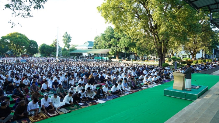 Sholat Ied Bersama Masyarakat, Pangdam XIV/Hsn Pesan Menjaga Amar Ma’ruf Nahi Munkar Untuk Masa Depan Negara