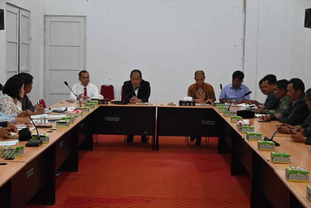 Bupati Humbahas Dosmar Banjarnahor, SE didampingi Kadis Sosial Frans Judika Pasaribu, Kadis Kominfo Batara Franz Siregar dan Plt Kadis PMD dan Perlindungan Anak Maradu Napitupulu memimpin rapat terkait percepatan penanggulangan kemiskinan ekstrem di Kabupaten Humbahas bertempat di Kantor Bupati, Jumat,30/6/2023.