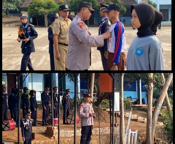 Senin – 24/ 7/2023. Dalam rangka upacara Bendera dan pembukaan latihan dasar mental di SMKN 1 Cikaum, Jajaran Polsek Cikaum Polres Subang, Bhabinkamtibmas berikan himbauan Kamtibmas di SMKN 1 Cikaum, Senin – 24 Juli 2023.