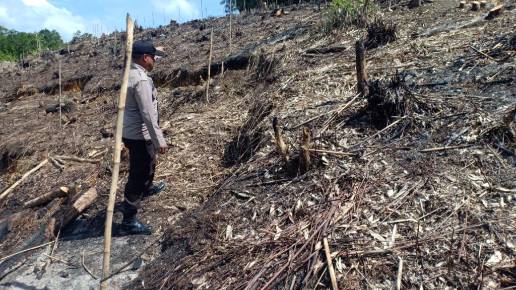 “Api berasal dari tumpukan kecil kayu yg dibakar sedikit demi sedikit dan tidak meluas karena telah disekat agar api tidak menjalar dengan luas lahan sekitar lebih kurang 1 hektare dan merupakan lahan mineral yang dibuka untuk menanam padi dan jagung,” tutur IPDA Donny Pati Pratama Yolanda.