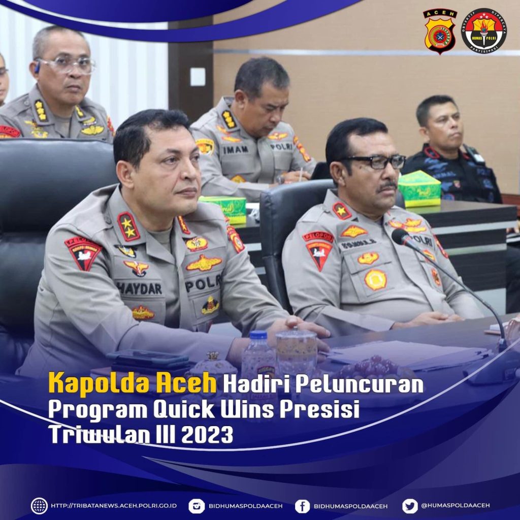 Kapolda Aceh Irjen Ahmad Haydar dan Wakapolda Brigjen Syamsul Bahri Menghadiri Peluncuran Program Quick Wins Presisi Triwulan III Tahun Anggaran 2023 di Ruang Vidcon Polda Aceh
