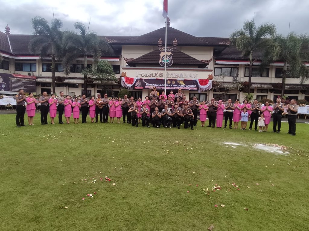Sebanyak 24 personil hari ini dinaikkan pangkatnya setingkat lebih tinggi,” ujar Kapolres Tabanan.