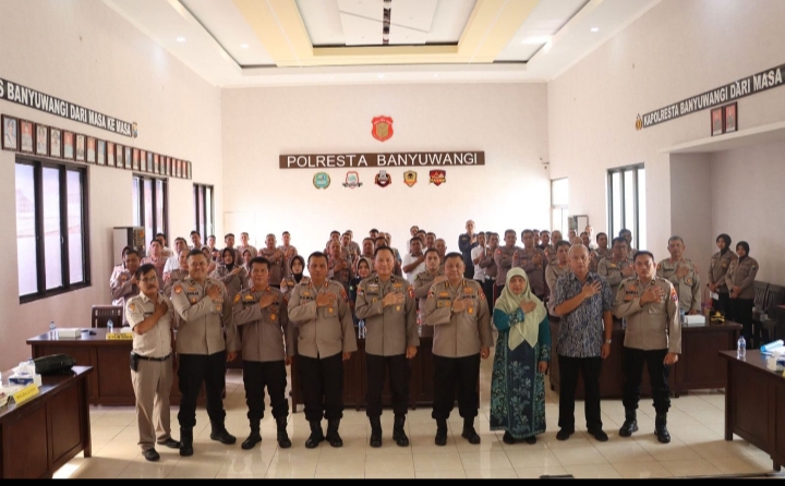 Dalam rangka Penelitian tentang Indek Pembangunan Kesehatan Polri pada Polresta Banyuwangi dan Polres Situbondo Tahun Anggaran 2023, dilaksanakan kegiatan Team Puslitbang di gedung Rupatama Polresta Banyuwangi, Senin (24/7).