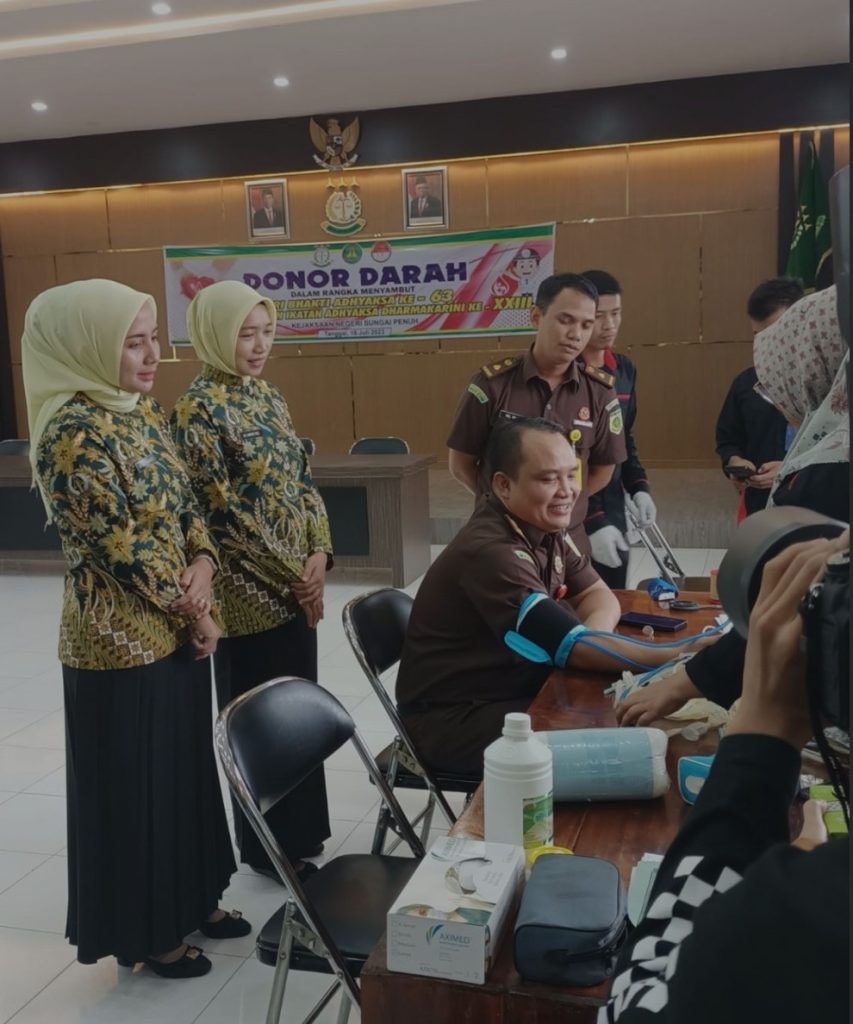 Dalam Rangka Memperingati Hari Bhakti Adhyaksa ke-63 dan Ulang Tahun Ikatan Adhyaksa Dharmakarini ke XXIII, Kejaksaan Negeri (Kejari) Sungai Penuh menggelar Donor Darah yang bekerjasama dengan Rumah Sakit Mayjen H.A.Thalib Kota Sungai Penuh yang dimulai dari jam 09.00 Wib hingga 12.00 Wib.Selasa (18/07/2023)