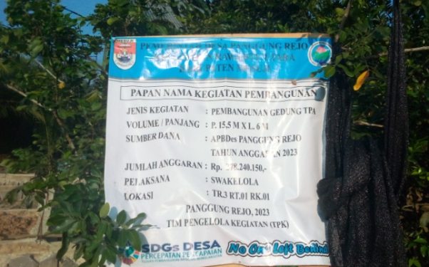 Pembangunan gedung TPA di desa panggung rejo Kabupaten Mesuji lampung. Dengan menggunakan sumber Dana APBDes (DD) tahun 2023 untuk membangun TPA berlokasi di RT 01 RW 01 dengan volume P .15.5m X L.6 Dengan pagu Anggaran Rp Rp. 278.240.150,- pelaksana gedung TPA tepat sasaran sesuai rapp dan harapan warga desa.