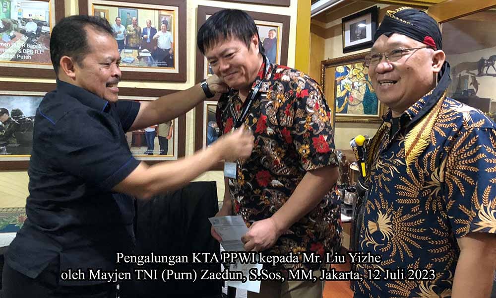 Pengalungan kartu tanda anggota PPWI dilakukan oleh Dewan Penasehat PPWI, Mayor Jenderal TNI (Purn) Zaedun, S.Sos, M.M. dalam sebuah pertemuan di Jl. Sambas III, Jakarta Selatan, Rabu, 12 Juli 2023 lalu. Dalam pertemuan itu juga dibahas berbagai program kerjasama antara PPWI, Koperasi dan UMKM Binaan Mayjen TNI (Purn) Zaedun, dan pihak Mr. Liu Yizhe.