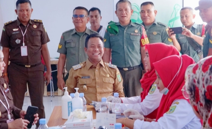 Wakil Bupati Rokan Hilir (Rohil) H.Sulaiman, SS.MH ikut menjadi peserta pada kegiatan donor darah dalam rangka peringatan Hari Bakti Adhiyaksa (HBA) ke-63 dan Hari Ulang Tahun (HUT) Ikatan Adhyaksa Dharmakarini (IAD) ke-XXIII tahun 2023 di Kejaksaan Negeri (Kejari) Rohil, Selasa (11/7/2023).