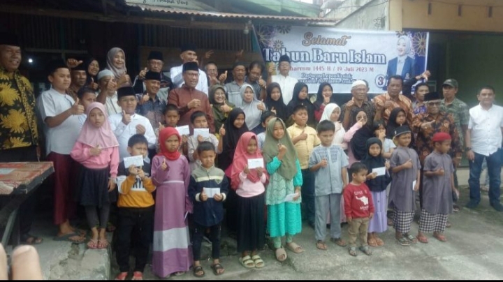 Memasuki satu Muharam pihaknya mengajak 32 orang anak yatim piatu untuk makan bersama dan memberikan sedikit uang tunai sebesar 280 ribu perorang.