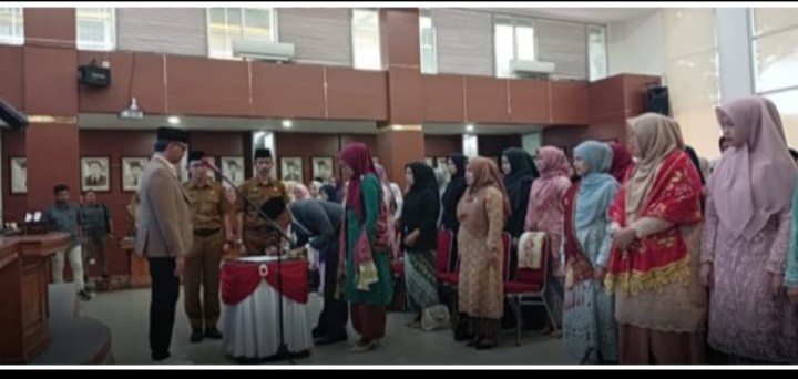 Pengambilan sumpah dan pelantikan pengangkatan dalam jabatan fungsional guru berjumlah 80 orang, fungsional nakes 73 orang Dan fungsional pranata komputer 1 orang dilingkungan Pemko Bukittinggi.