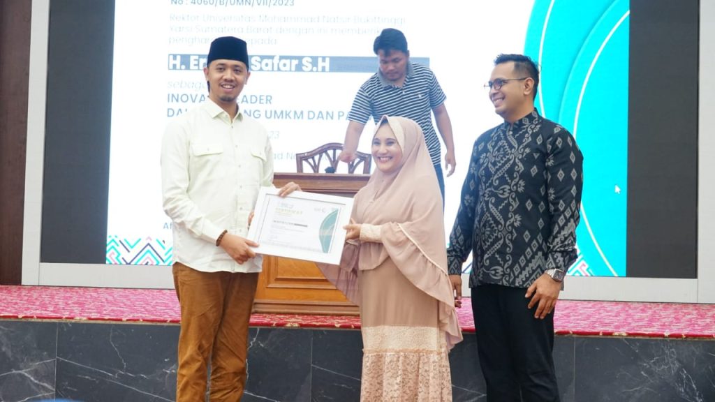 Untuk itu, Universitas Mohammad Natsir, berikan penghargaan dan anugerah pada Wali Kota Bukittinggi Erman Safar, sebagai inovatif leader dalam bidang UMKM dan pariwisata.