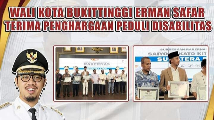 Wali Kota Bukittinggi Sumatera Barat, terima penghargaan sebagai pemerintah daerah yang peduli dan ramah disabilitas.