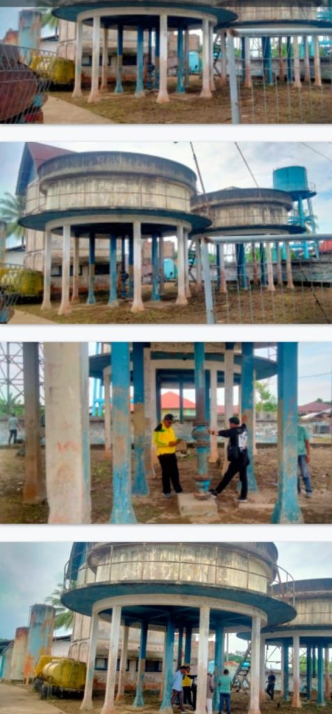 Kepala Dinas Lingkungan Hidup (DLH) Kabupaten Rokan Hilir (Rohil) Suwandi,S,Sos melihat secara langsung kondisi bangunan bersejarah Water Leading, dijalan Siak Kecamatan Bangko, Kamis (6/7/2023) Bagansiapiapi.