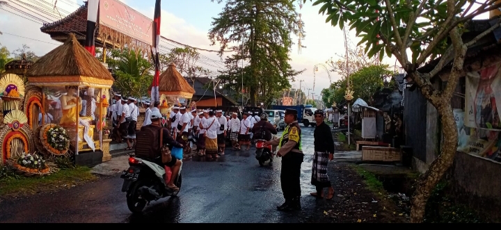 Bhabinkamtibmas Desa Kukuh Amankan Rangkaian Upacara Pedudusan Alit