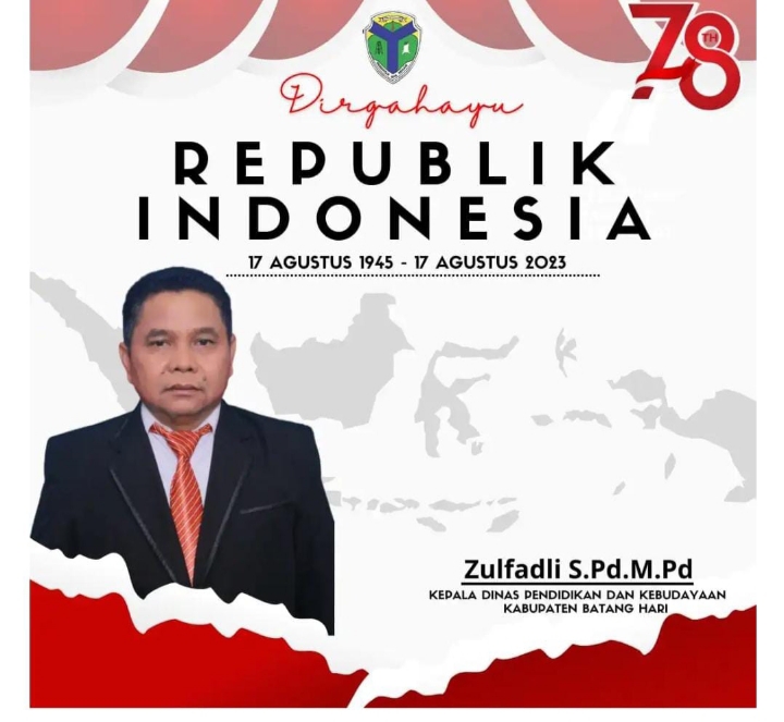 Kepala Dinas Pendidikan Dan Kebudayaan Kabupaten Batanghari( Zulfadli S.Pd M.Pd Beserta Staf Msngucapkan “ SELAMAT HARI JADI REPUBLIK INDONESIA KE 78 TERUS MELAJU UNTUK INDONESIA MAJU