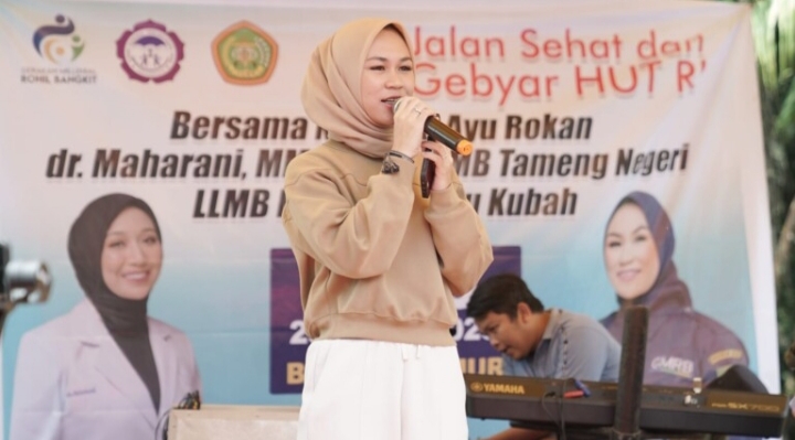 Ketua Umum GMRB, Nalladia Ayu Rokan. dalam sambutannya menuturkan bahwa, dirinya bersama rekan rekan GMRB aktif melakukan giat jalan santai dalam rangka memeriahkan momentum HUT RI selama bulan Agustus.