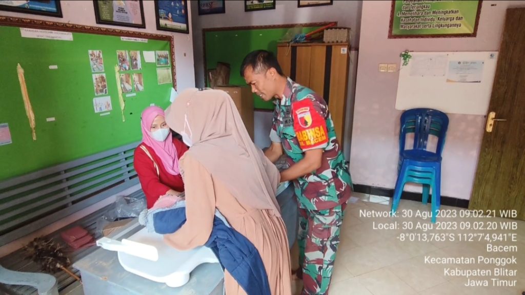 Dalam rangka mendukung program pemerintah, Babinsa Koramil 0808/07 Ponggok Kodim 0808/Blitar Sertu Purnomo, melaksanakan kegiatan pendampingan Posyandu Balita, bertempat di Kantor Desa Bacem Kec. Ponggok Kab. Blitar, Rabu (30/8/2023).