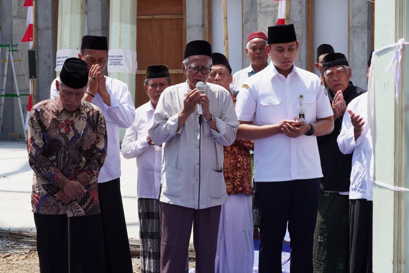 Prosesi pemasangan Soko Guru diawali dengan membacakan doa yang dipimpin langsung oleh KH Asroi Tohir, kemudian dilanjutkan dengan pemasangan yang dilakukan bersama.