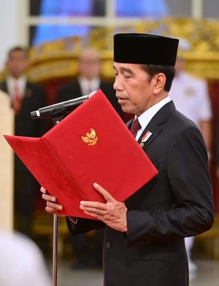 Selepas itu, Presiden Jokowi menyematkan lencana secara simbolis kepada pemimpin upacara sebagai tanda pengukuhan Paskibraka.