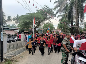 Menyambut dan memeriahkan HUT ke-78 Kemerdekaan RI Tahun 2023, Koramil 0204-18/Galang menggelar acara gerak jalan santai di Desa Jaharun B, Kecamatan Galang, Kabupaten Deli Serdang, Minggu (13/8/2023).