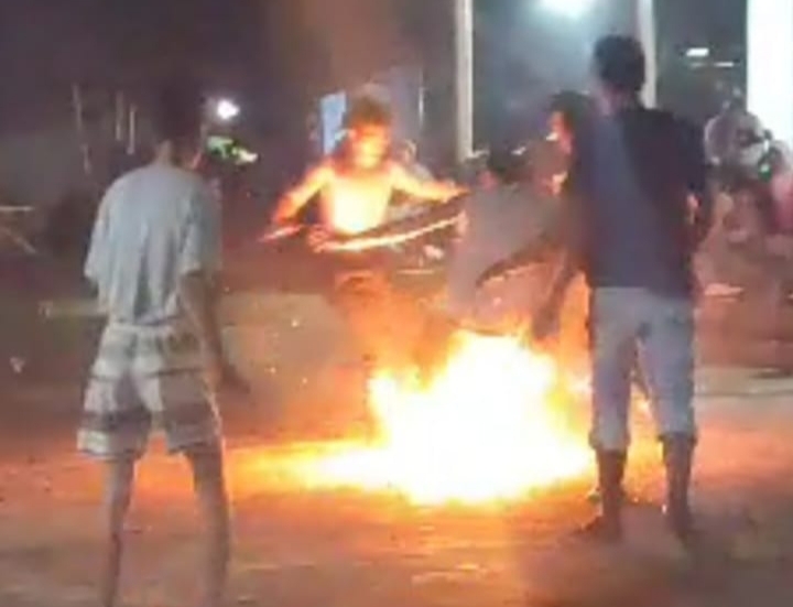 SRUNYA PERMAINAN BOLA API DI ACARA HUT RI KE 78 DI JL 1 UNIT 4 DESA PURWO HARJO